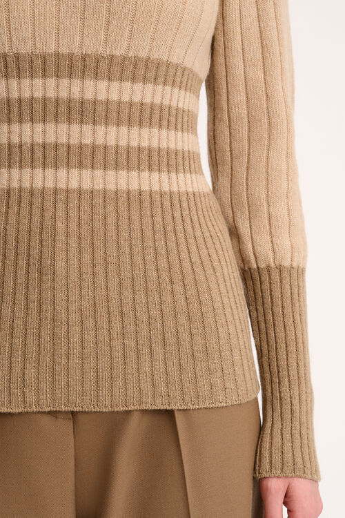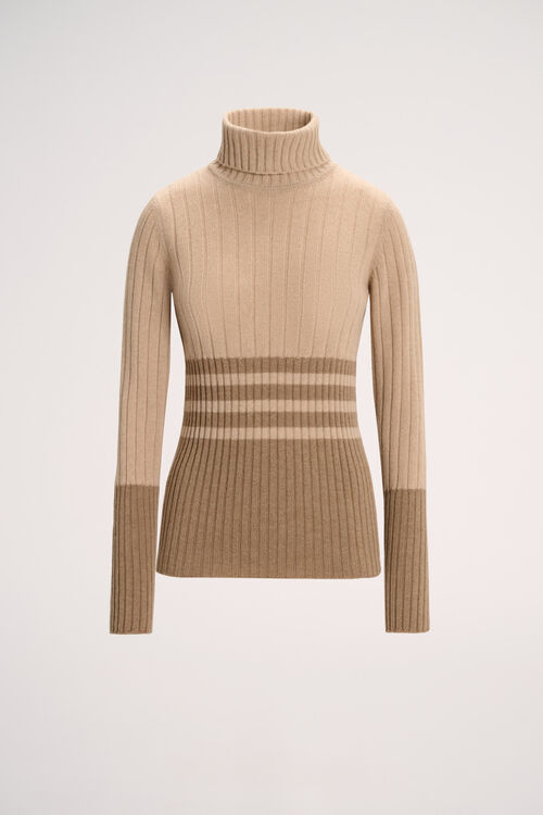 Свитер с высоким воротом из шерсти и кашемира. отделка из трикотажа в рубчик. Классический крой. Комбинация двух цветов.