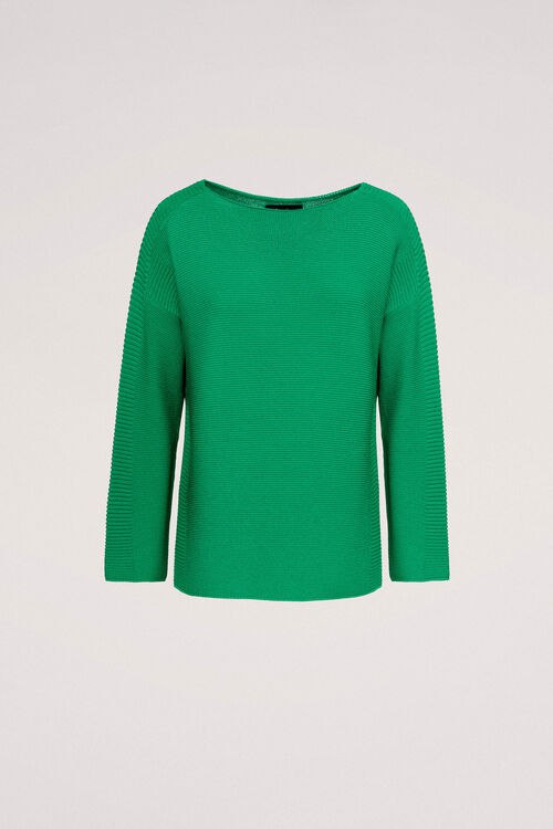 Вязаный пуловер из вискозы. Вырез-лодочка, заниженная линия плеча. Классическая посадка.