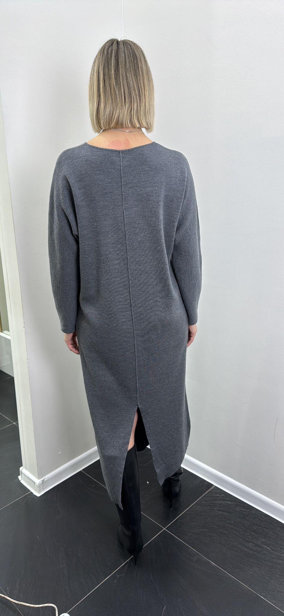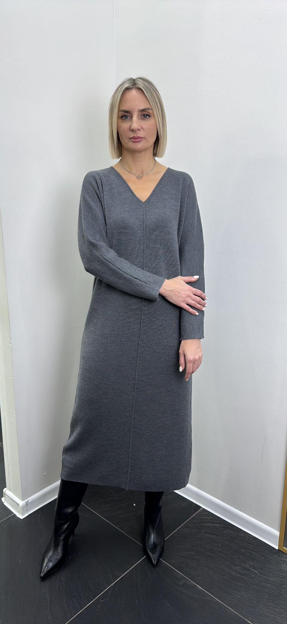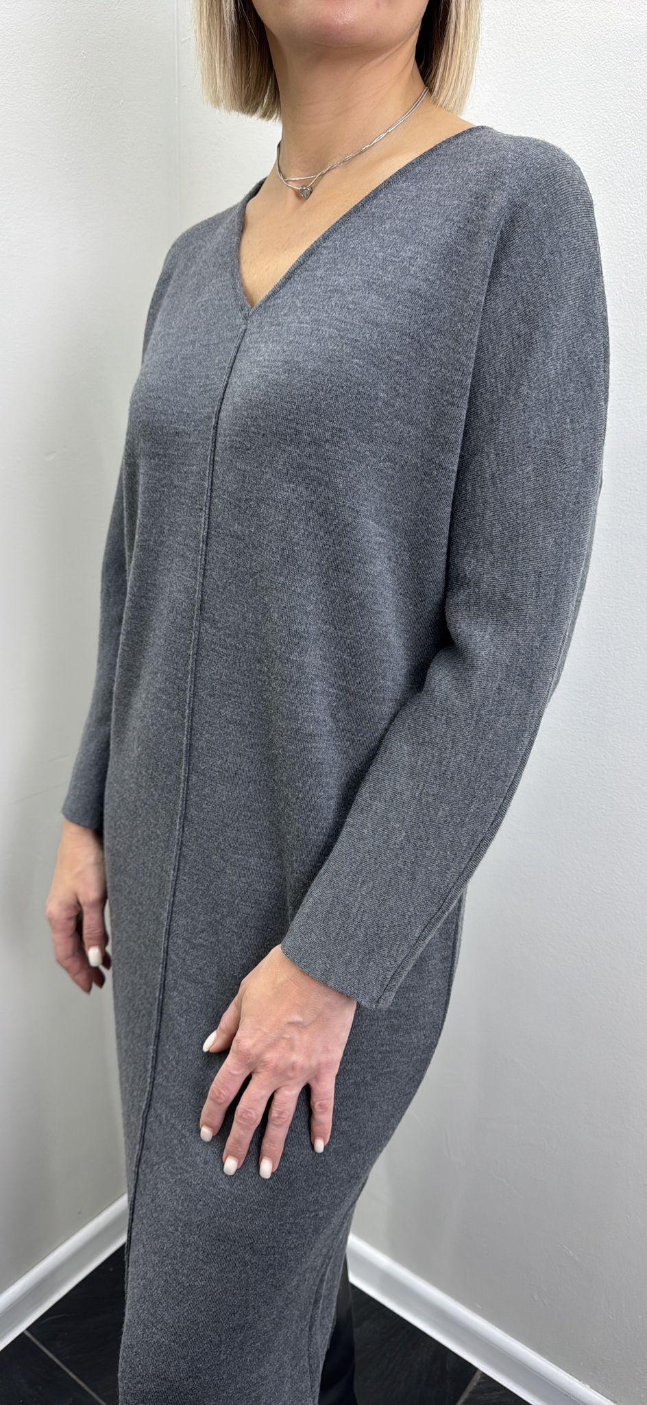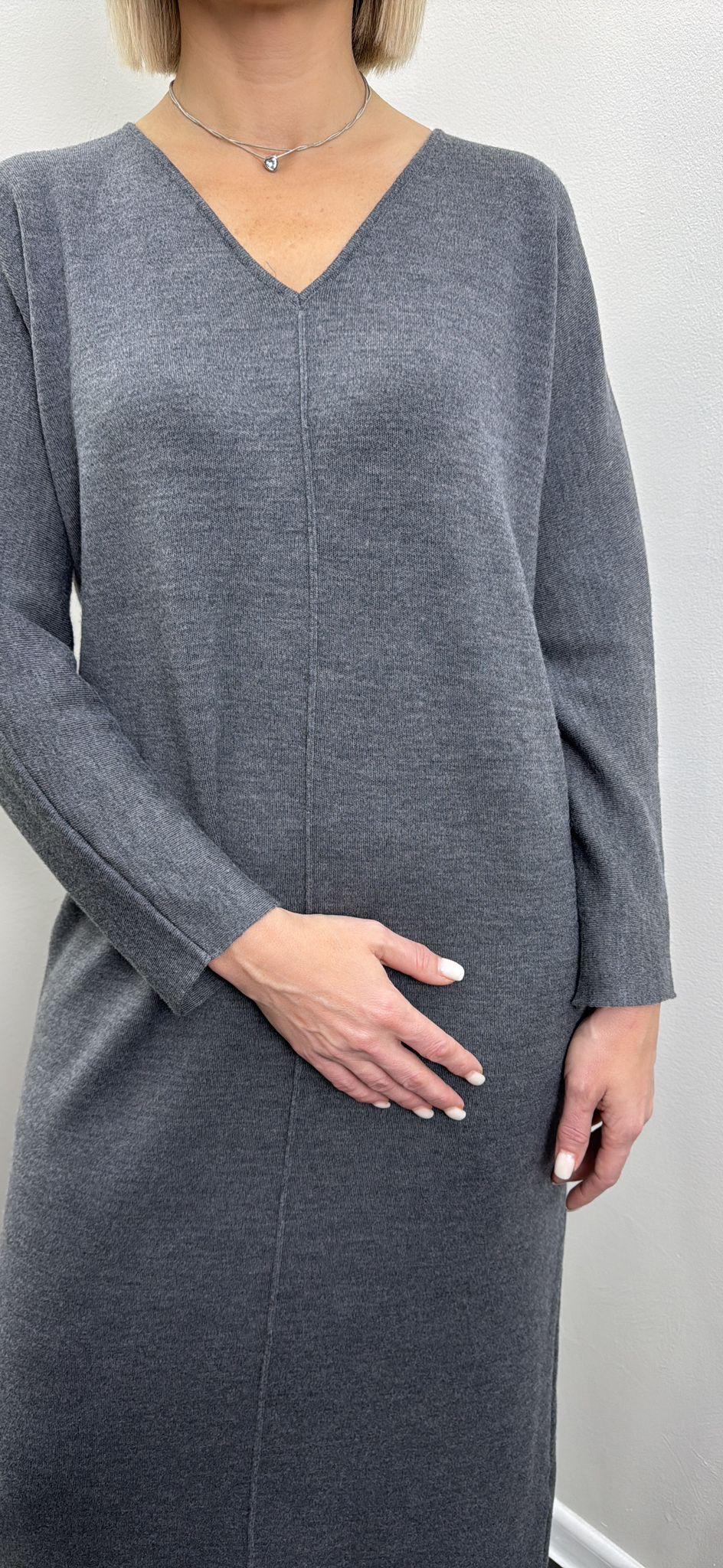 100% мериносовая шерсть. Платье тактильно не колется. Классический ровный крой. Длинные рукава