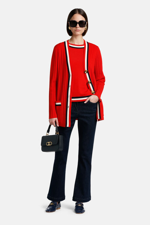 Пуловер из натуральной шерсти в рубчик. Классический крой.