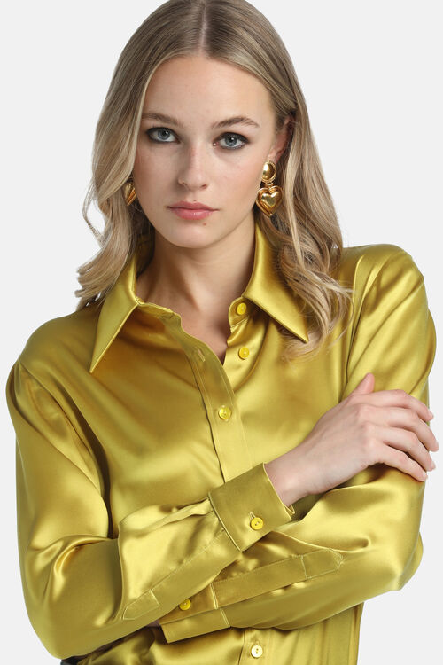 Рубашка из шелка с классическим воротником, рукавами с манжетами и пуговицами в тон.