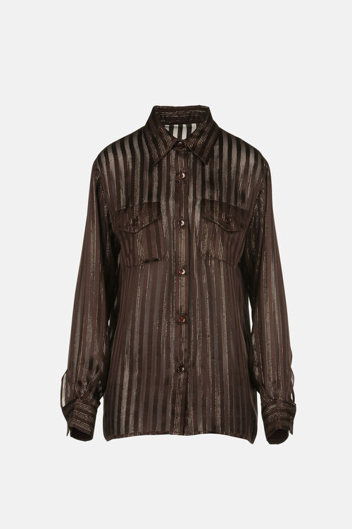Шелковая рубашка с узором в тонкую полоску, обогащенная нитью люрекса.