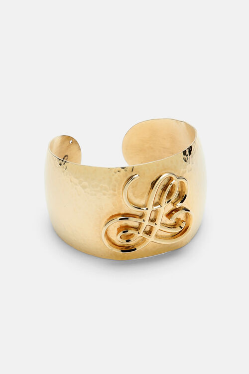 Широкий браслет цвет золота, с выступающим курсивным логотипом «LS».