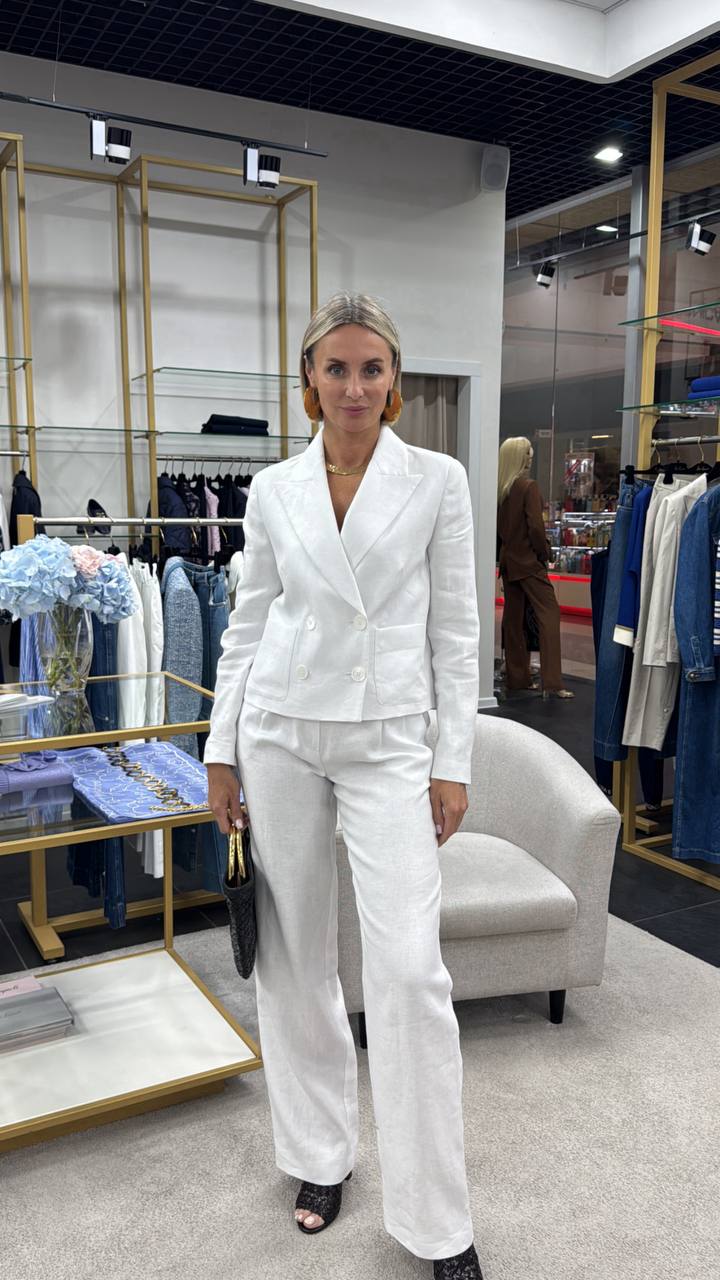 Брюки из льна, классического кроя, застежка на молнию и крючок, прямого кроя