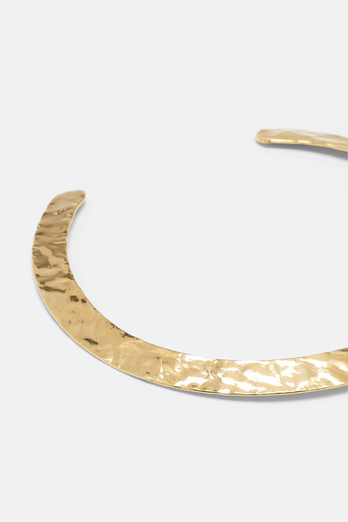 Ожерелье из жёсткого кованого металла с позолоченной отделкой.