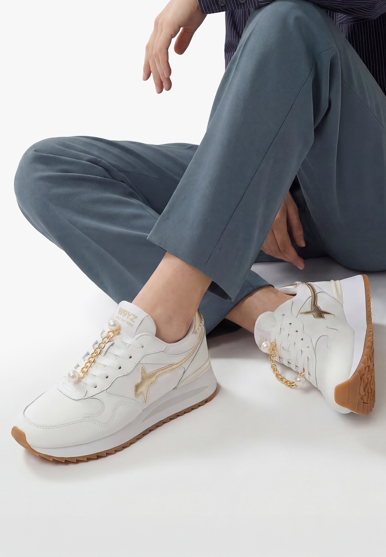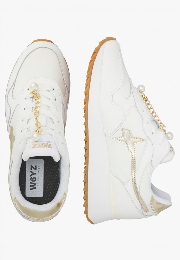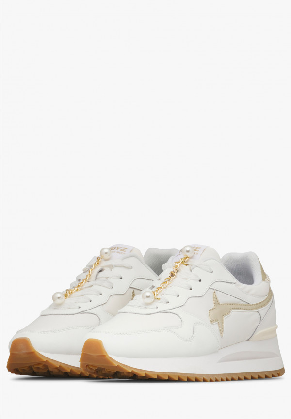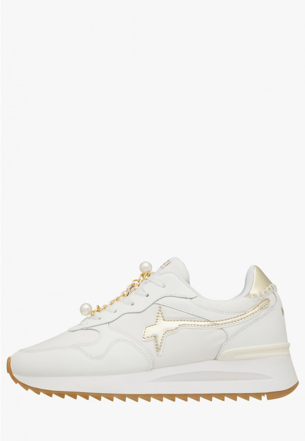 Динамичный дизайн и стильные детали — сильная сторона этих кроссовок, которые привнесут новый свет в ваш повседневный образ. Металлические вставки и золотая цепочка украшают верхнюю часть из технической ткани с кожаными секциями, выполненными в тон. Приподнятая подошва из сверхлегкой резины, украшенная и с зубчатым дном, обеспечивает максимальный комфорт день за днём.