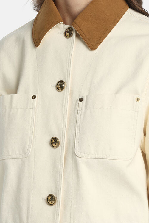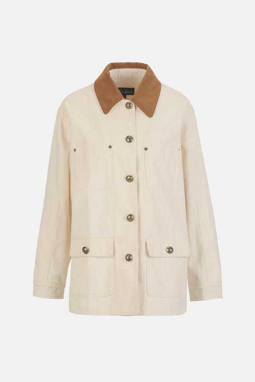 Хлопковая полотняная куртка с воротником в стиле рубашки из искусственного замша,