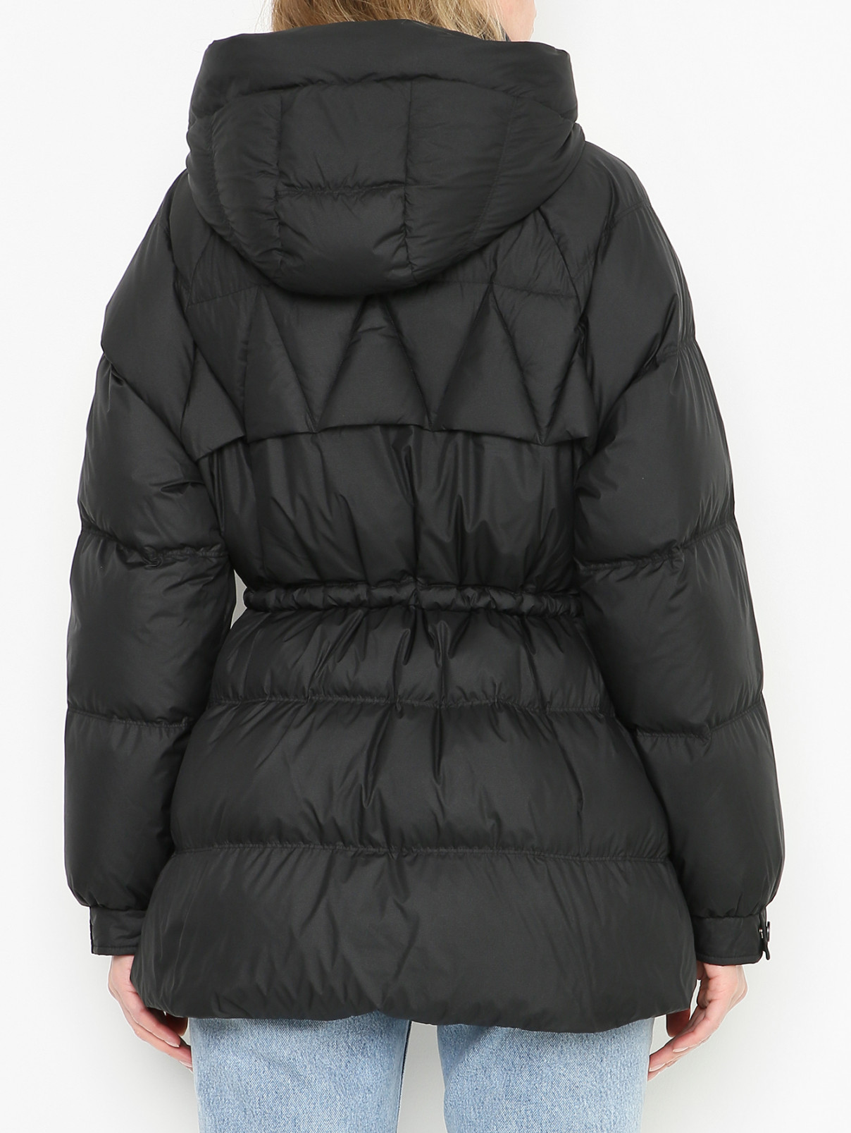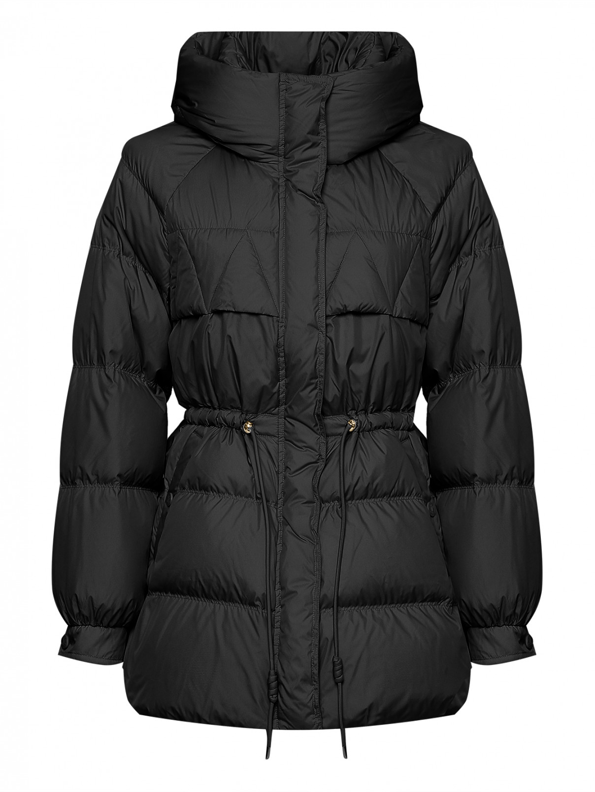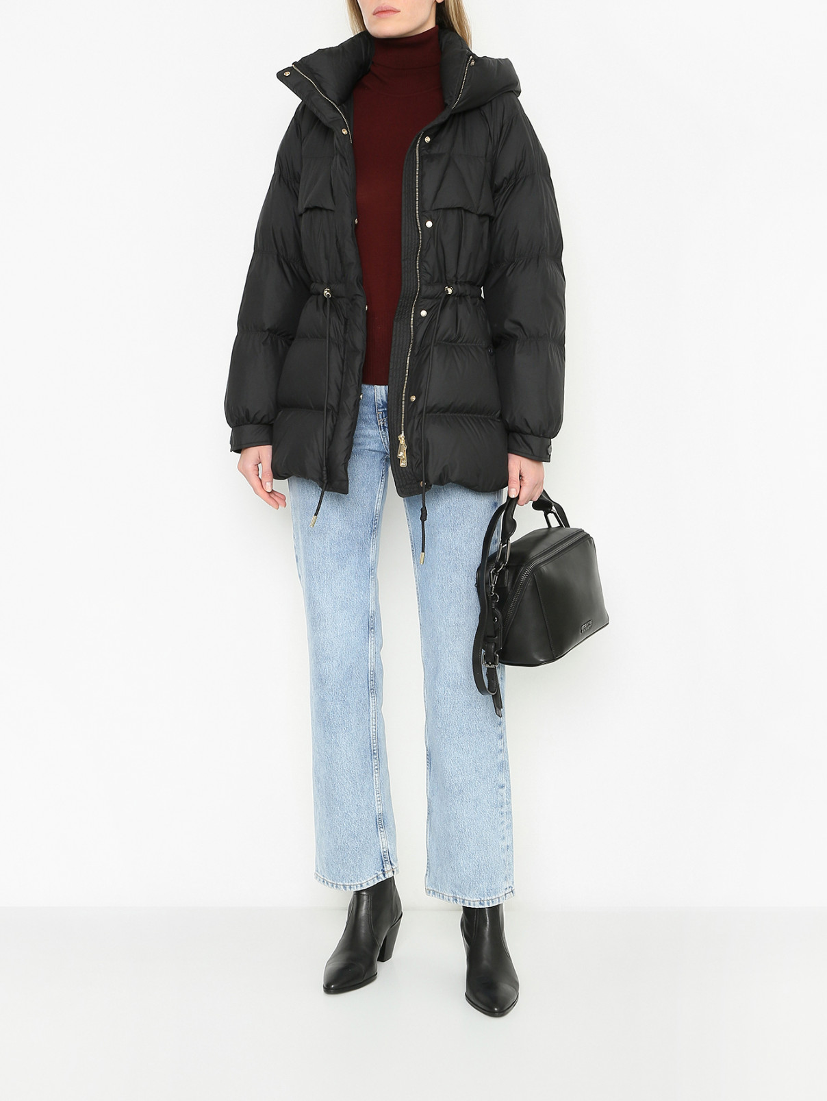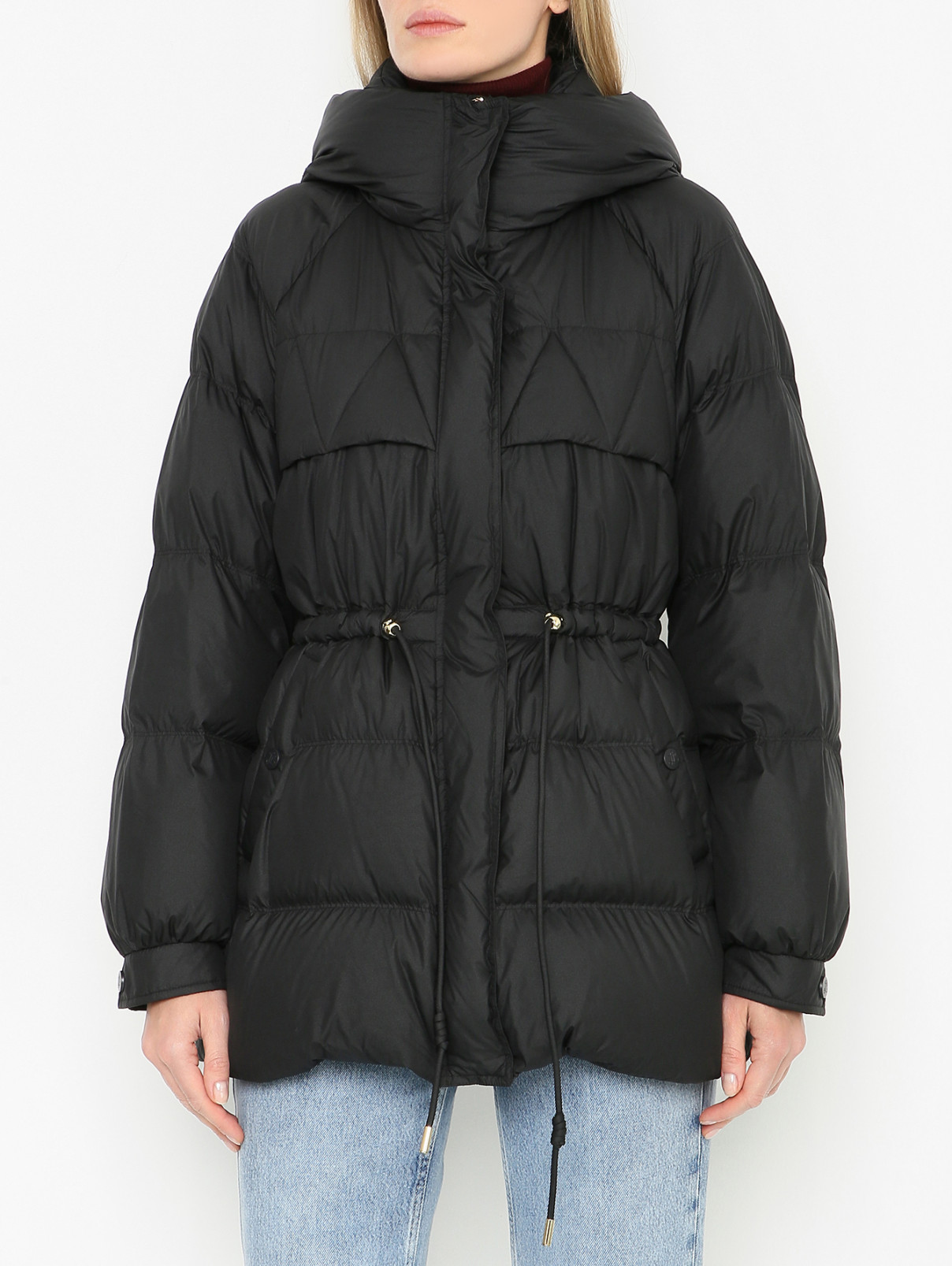 Куртка пуховик средней длинны. По линии талии кулиска, по низу куртки затяжка. Капюшон, рукав манжет на кнопке. Удобные карманы.