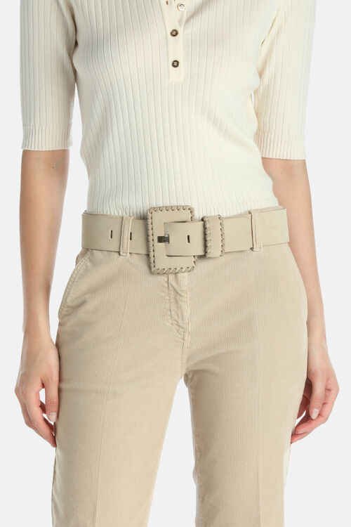 Ремень DOMATA «Широкий ремень из замши с серебристым металлическим зубцом. С обтянутой пряжкой и шлёвками, дополненный деталями из гладкой кожи в тон.