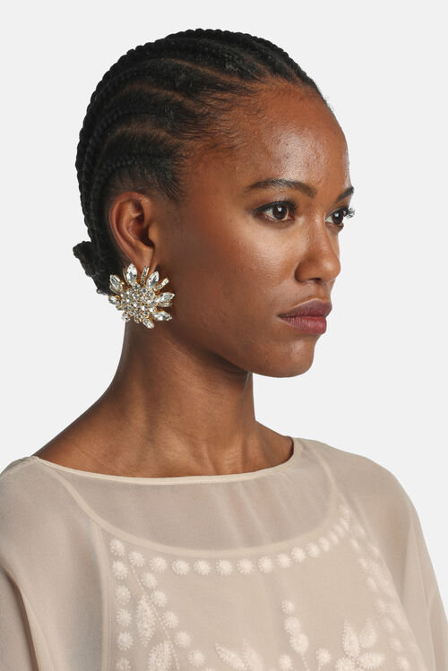 Клипсы с цветочным дизайном, состоящая из кристаллов, вставленных в золотистую латунь.
