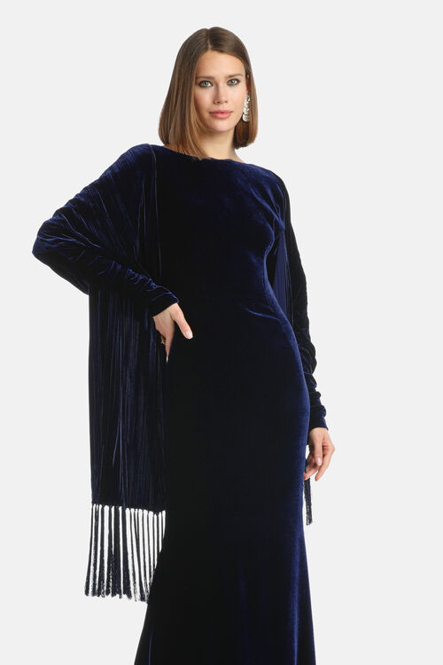 Шелковый бархатный палантин с кисточками с бахромой по краям