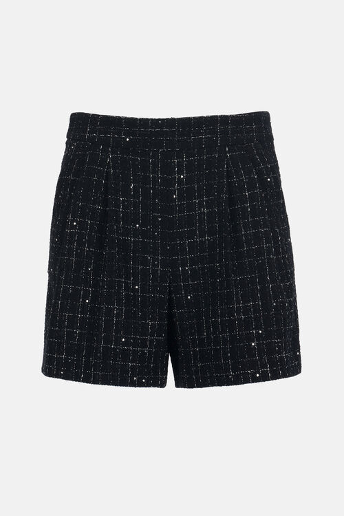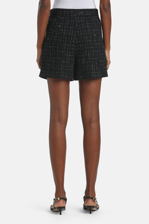 Структурированные хлопко-вискозные шорты, освещённые нитями люрекса и микро-пайетками,