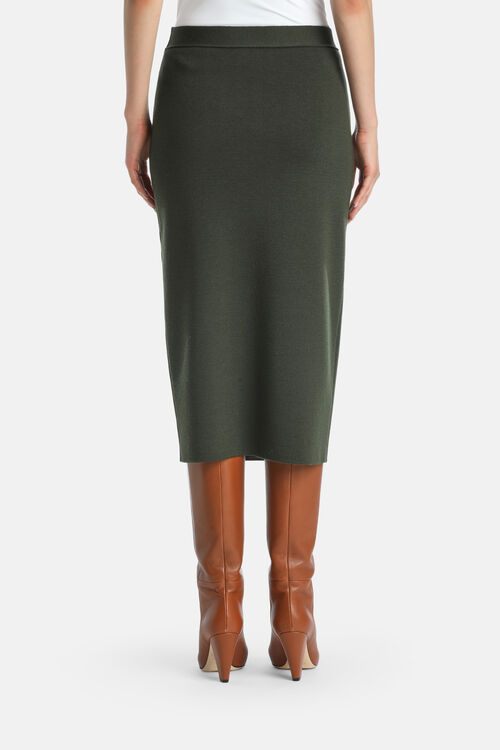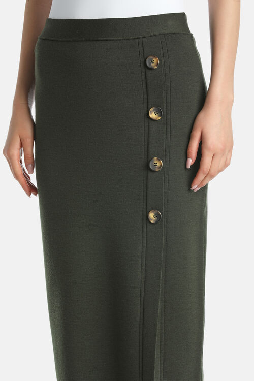 Юбка миди из натуральной шерсти с тканевым переплетением, украшенная контрастными пуговицами по бокам. Стандартная посадка.Сделано в Италии.