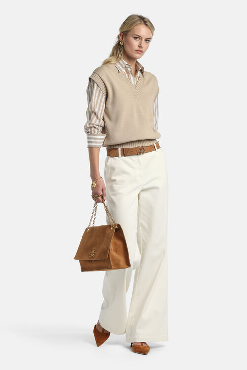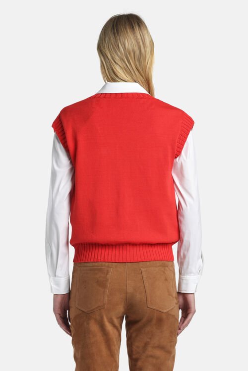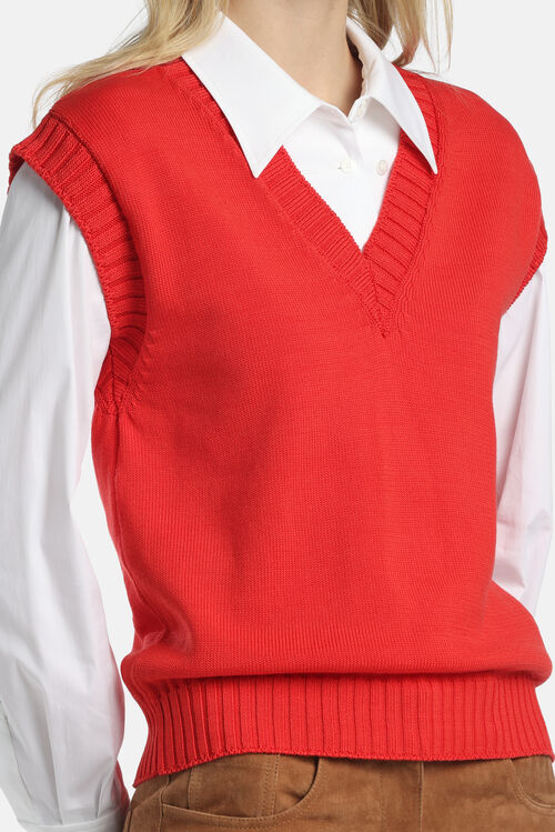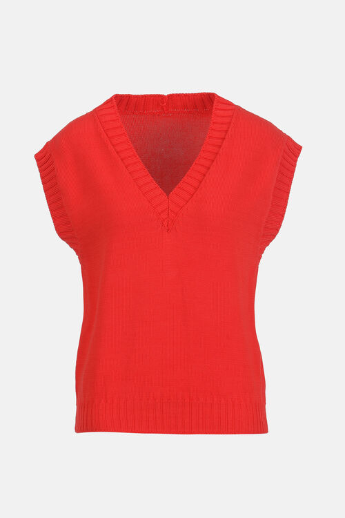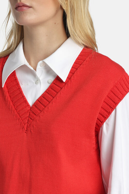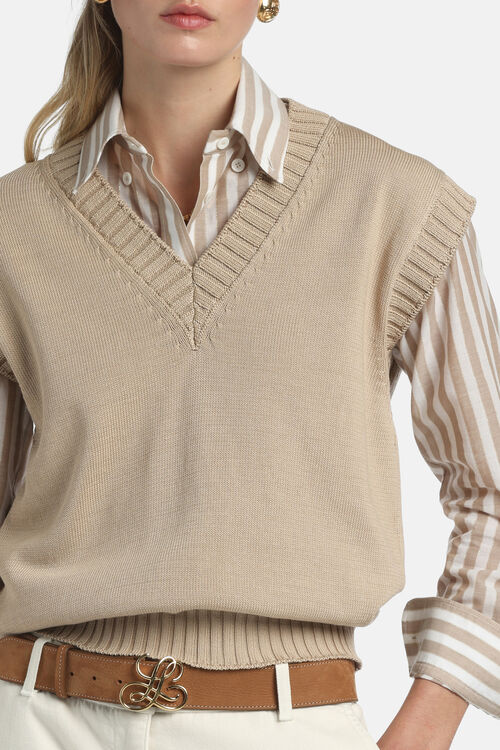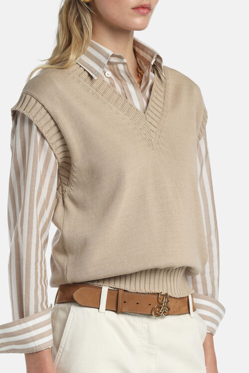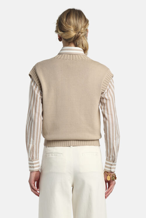Хлопковый жилет из трикотажа с глубоким V-образным вырезом с отделкой ребристой вязки.